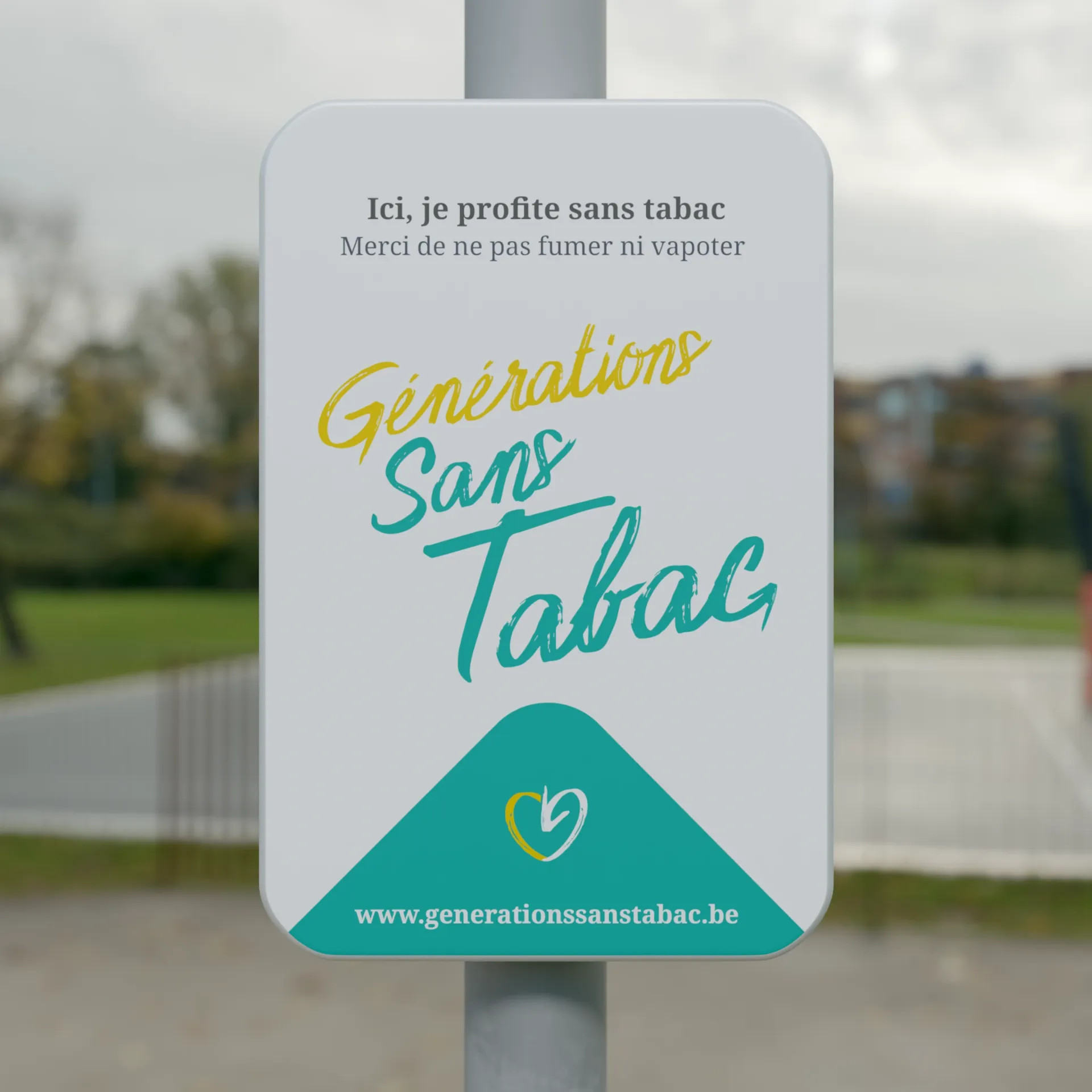 Materiaal: Franstalig verkeersbord SB250 met Super High Tack printfolie en dubbel omgezette rand